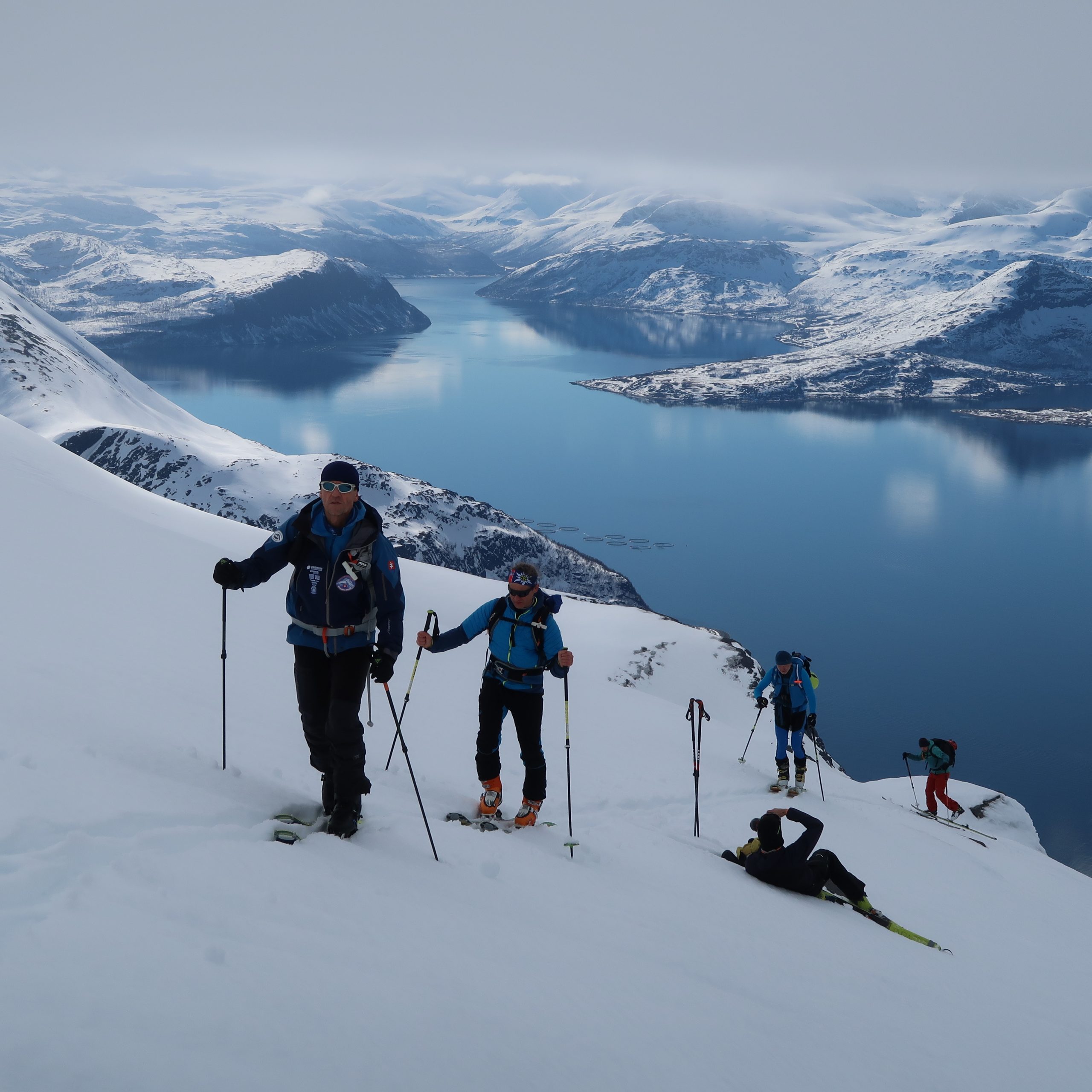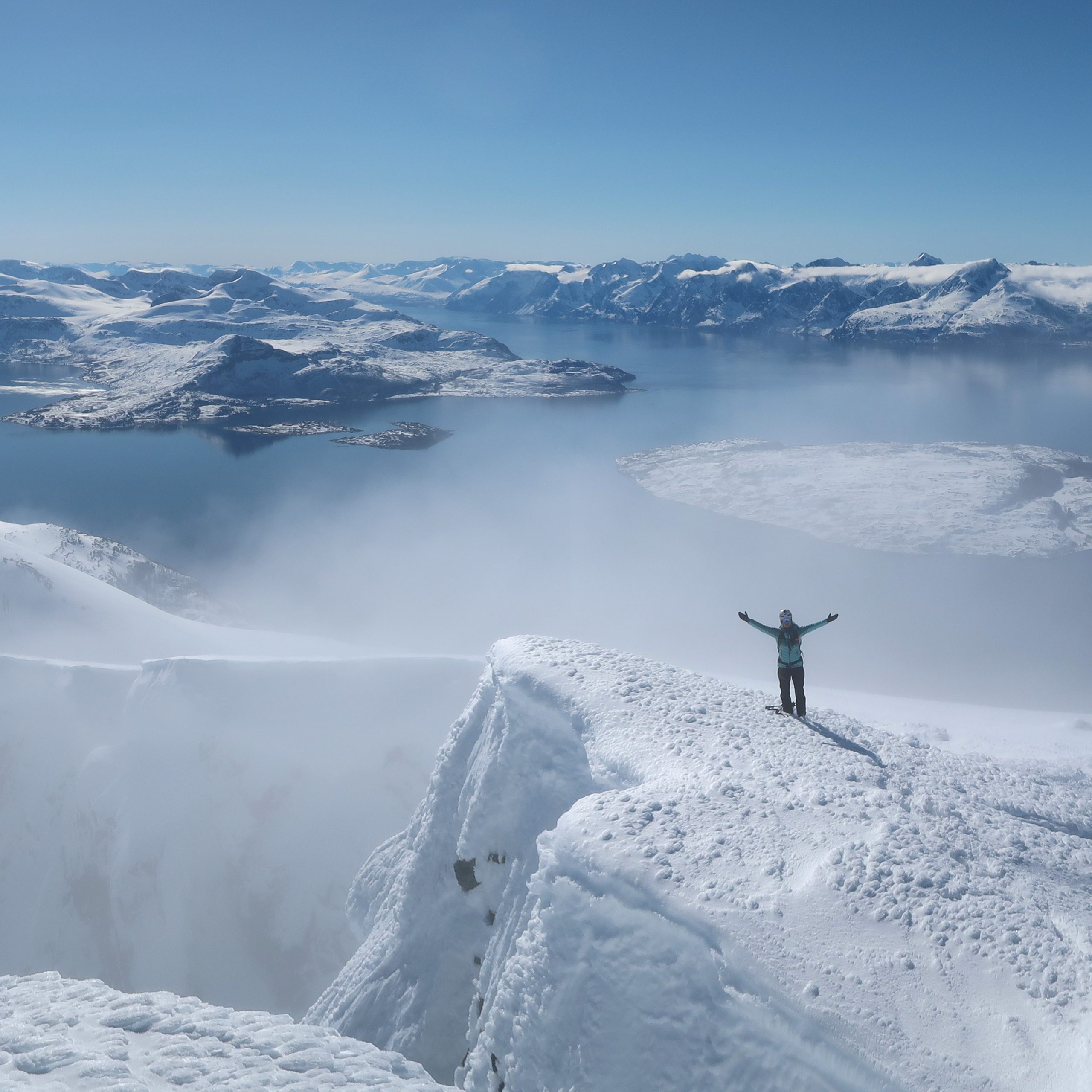 Wiadomo, że zależy to od gustów. Niektórzy wiosną wolą Karaiby. Powiem szczerze, że jak dla mnie zbalansowanie zimowego sezonu równowagą między Arktyką a egzotyką brzmi świetnie! Nazywany Alpami północy region składa się z archipelagu górzystych wysp i fiordów. Większość wzniesień przekracza 1000 m n.p.m. W zimie ciepły prąd opływa okolice, sprawiając, że klimat jest stosunkowo łagodny. Rzadko temperatura spada tutaj do ekstremum. Na ogół jest to od -8 do -11°C. W marcu i kwietniu temperatury zbliżają się do zera, co sprawia, że… pokład nie zamarza aż tak bardzo 🙂 Zasypane grubą powłoką śniegu północne zbocza to idealny region na skitoury. Jak często ma się okazję wspiąć i zjechać na nartach z góry na wyspie na samym końcu Europy? Sprawę znacznie ułatwia posiadanie jachtu.