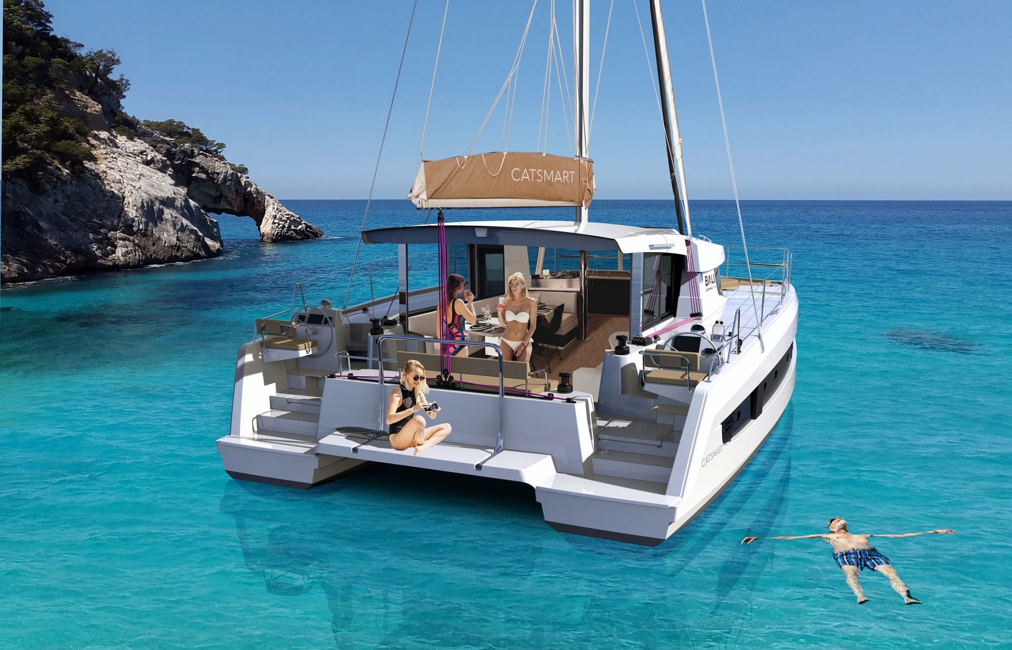 Nowy Bali Catsmart będzie łączył w sobie wszystkie najnowsze osiągnięcia w gamie: sztywny przedni kokpit z częścią wypoczynkową i miejscami do opalania, platformę łączącą pawęże z siedziskiem i schowkami, dwie wygodne sterówki, prosty, ale bardzo praktyczny system żurawików do wciągania i wodowania tendera i oczywiście uchylne drzwi oraz przesuwne boczne okna, które po otwarciu tworzą ogromny open space, który jest bezcennym walorem podczas żeglugi po ciepłych wodach.