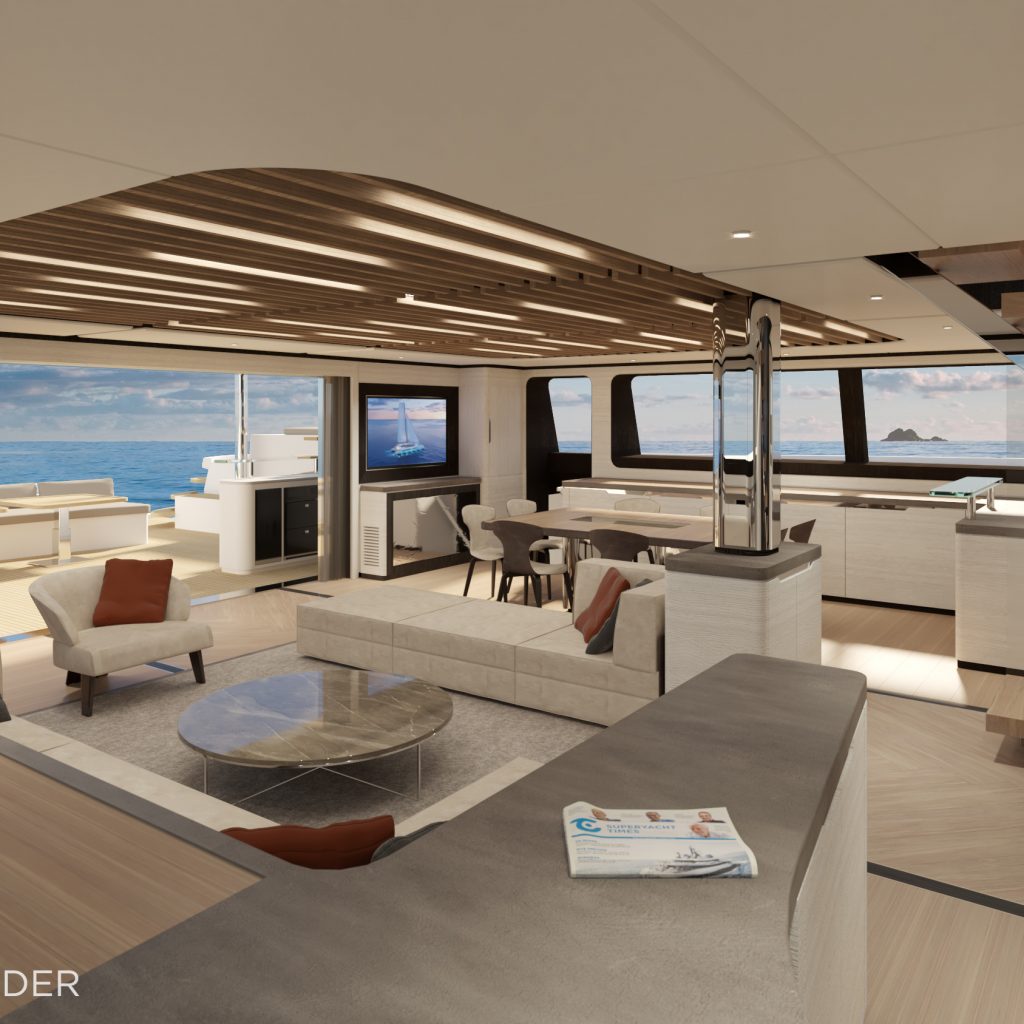Nowy Bali Catsmart będzie łączył w sobie wszystkie najnowsze osiągnięcia w gamie: sztywny przedni kokpit z częścią wypoczynkową i miejscami do opalania, platformę łączącą pawęże z siedziskiem i schowkami, dwie wygodne sterówki, prosty, ale bardzo praktyczny system żurawików do wciągania i wodowania tendera i oczywiście uchylne drzwi oraz przesuwne boczne okna, które po otwarciu tworzą ogromny open space, który jest bezcennym walorem podczas żeglugi po ciepłych wodach.