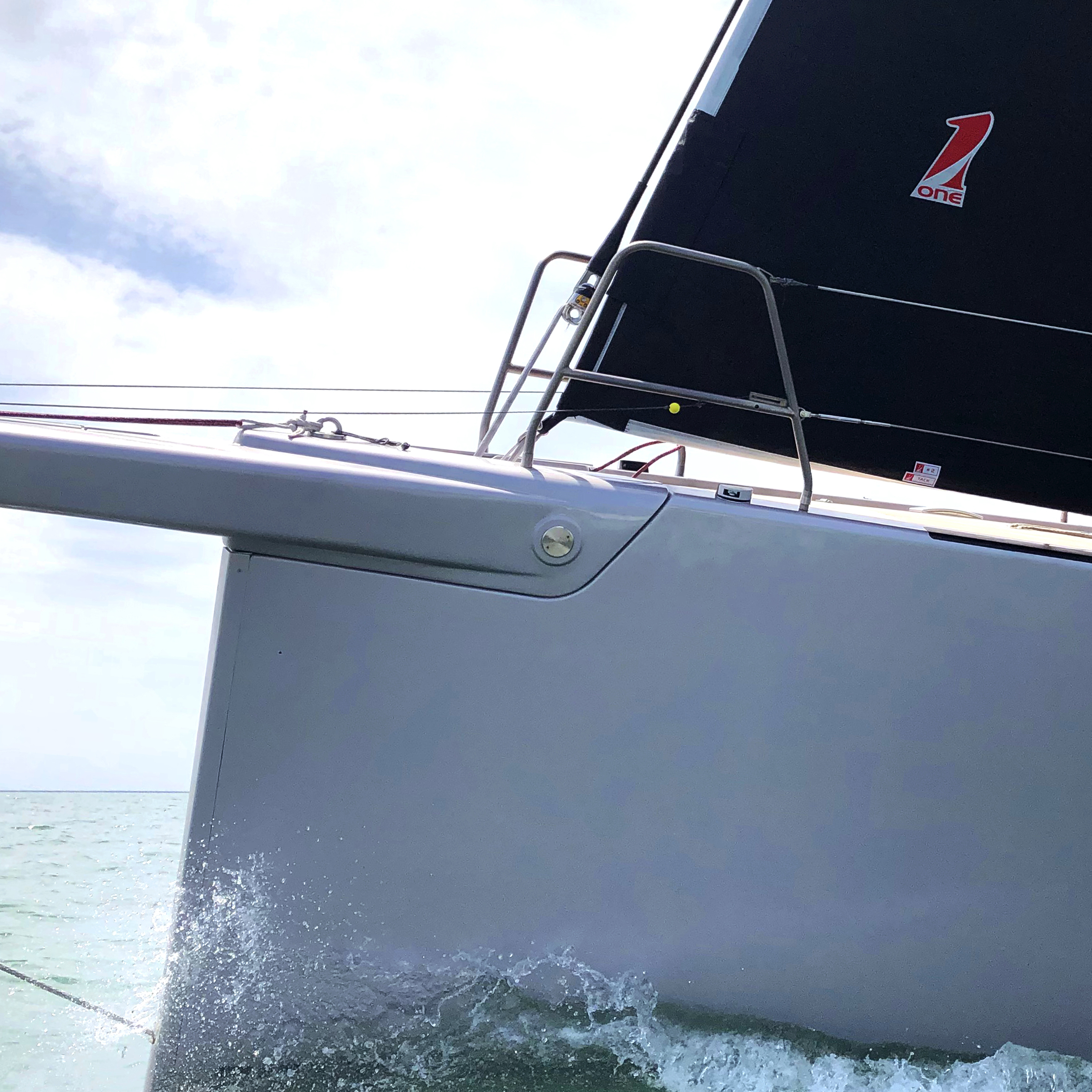 Scuderia 65, zaprojektowana przez genialnego Harry’ego Miesbauera, została zoptymalizowana pod kątem stabilności formy i doskonałych osiągów na morzu. Jest łatwa do żeglowania z nieliczną załogą, a mocny takielunek i opcja podniesionego kila nadają jej porywające tempo przy silnym wietrze. „Wspólnie z właścicielem zdecydowaliśmy się na mocniejszy kształt kadłuba” – mówi Miesbauer. „Wiedzieliśmy, że to da przewagę, podczas bezwietrznych warunków, a w niektórych okolicznościach będziemy nawet szybsi niż prognozy prędkości VPP. Kiedy byłem na pokładzie, jednostka osiągała 21 węzłów na szerokim halsie przy wietrze 20 węzłów, a dwuosobowa załoga podawała prędkość maksymalną 28,7 węzła”.