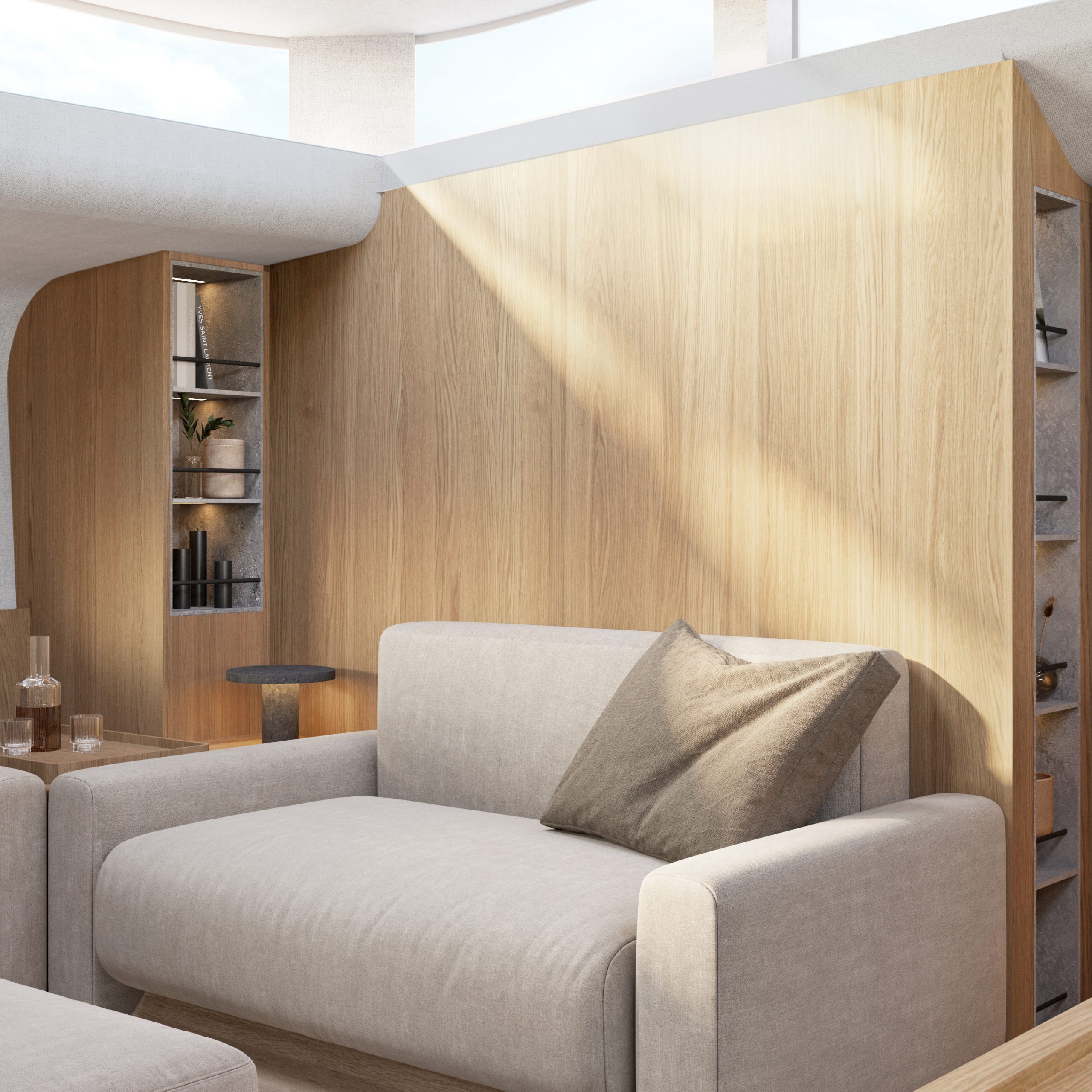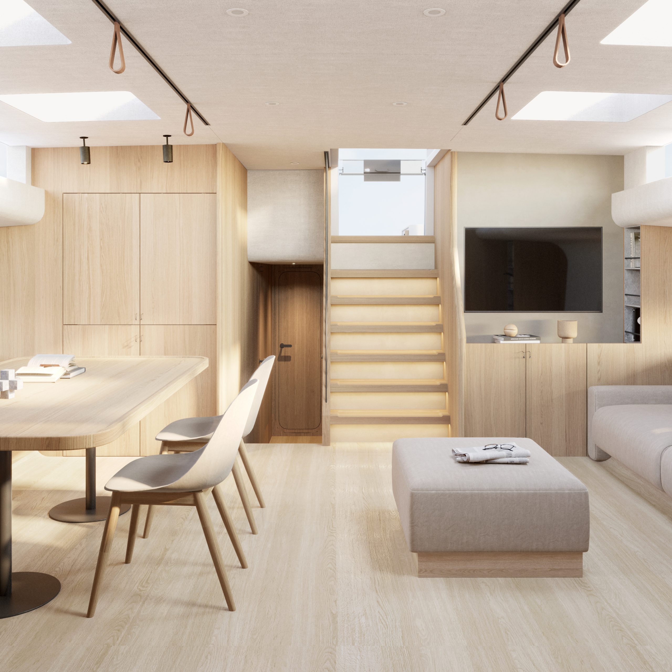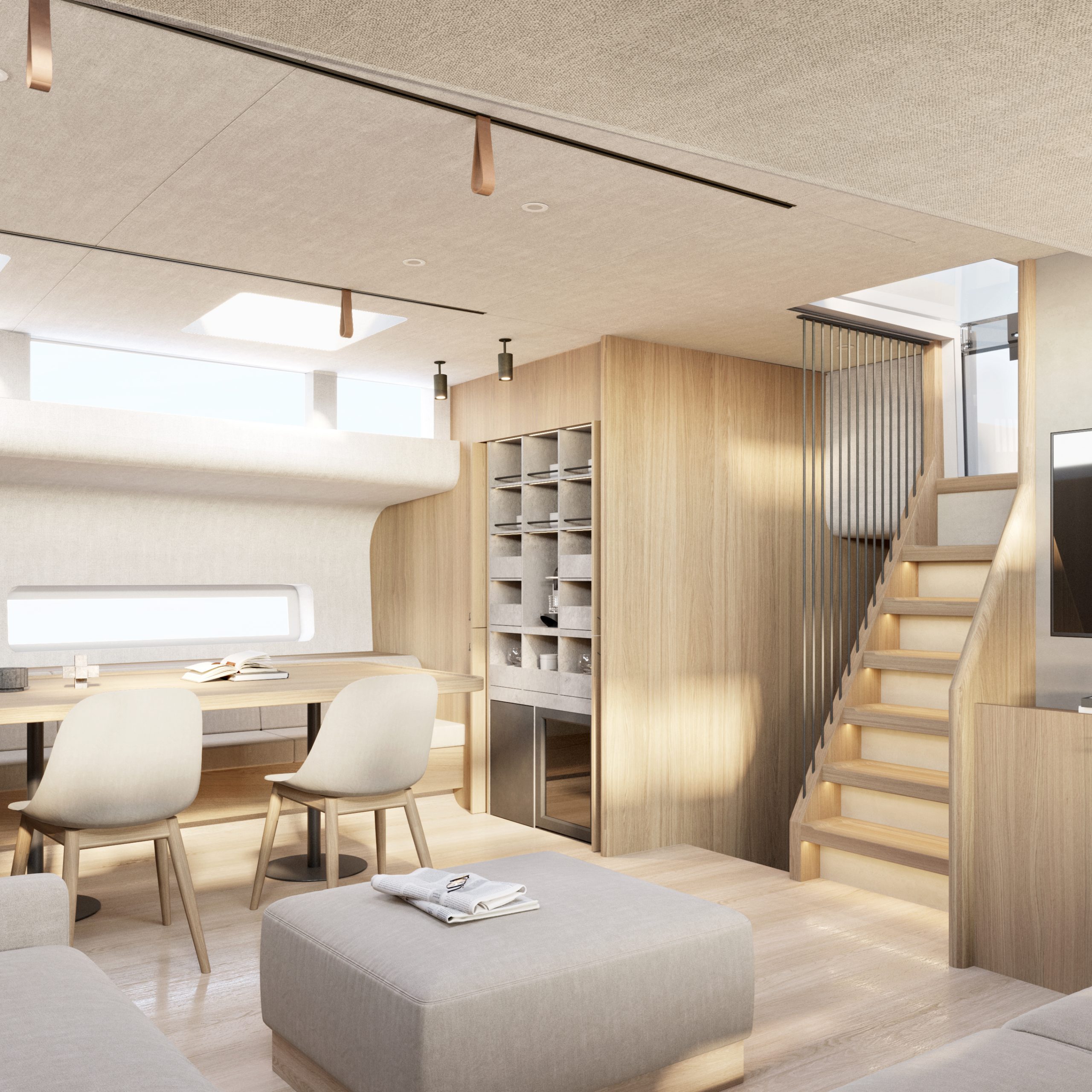 Wnętrze jachtu jest o 20% większe niż w przypadku jego poprzednika. Daje to wiele możliwości aranżacji. Apartament właściciela wraz z oddzielnym salonem może znajdować się na dziobie lub na rufie z bezpośrednim dostępem do kokpitu, a kambuz może być zainstalowany w wersji otwartej lub zamkniętej. Można też zdecydować się na trzy lub cztery kabiny. Dzięki przeniesieniu maszynowni poniżej salonu, jacht ma niżej położony środek ciężkości, a tym samym lepszą równowagę, co przekłada się na dodatkową prędkość. Nawiasem mówiąc, dzięki lekko podniesionej podłodze salonu, właściciele i goście mogą z tego miejsca cieszyć się niezakłóconym widokiem na morze.